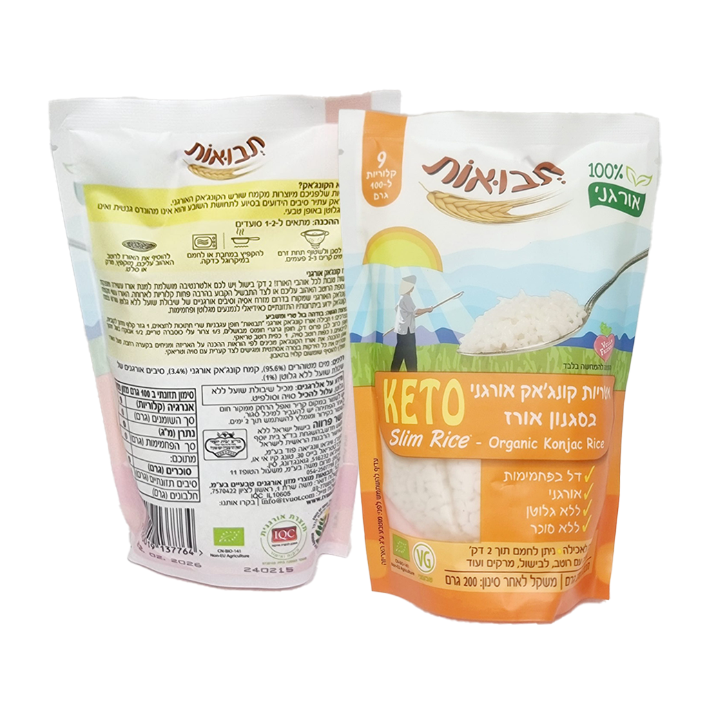 עשוי מקמח הקונג'אק אורני שמקורו בדרום מזרח אסיה וסיבים אורגניים של שיבולת שועל ללא גלוטן, שורש הקונג'אק ידוע ביתרונותיו התזונתיים כאידלאלי לנמנעים מגלוטן ופחמימות.