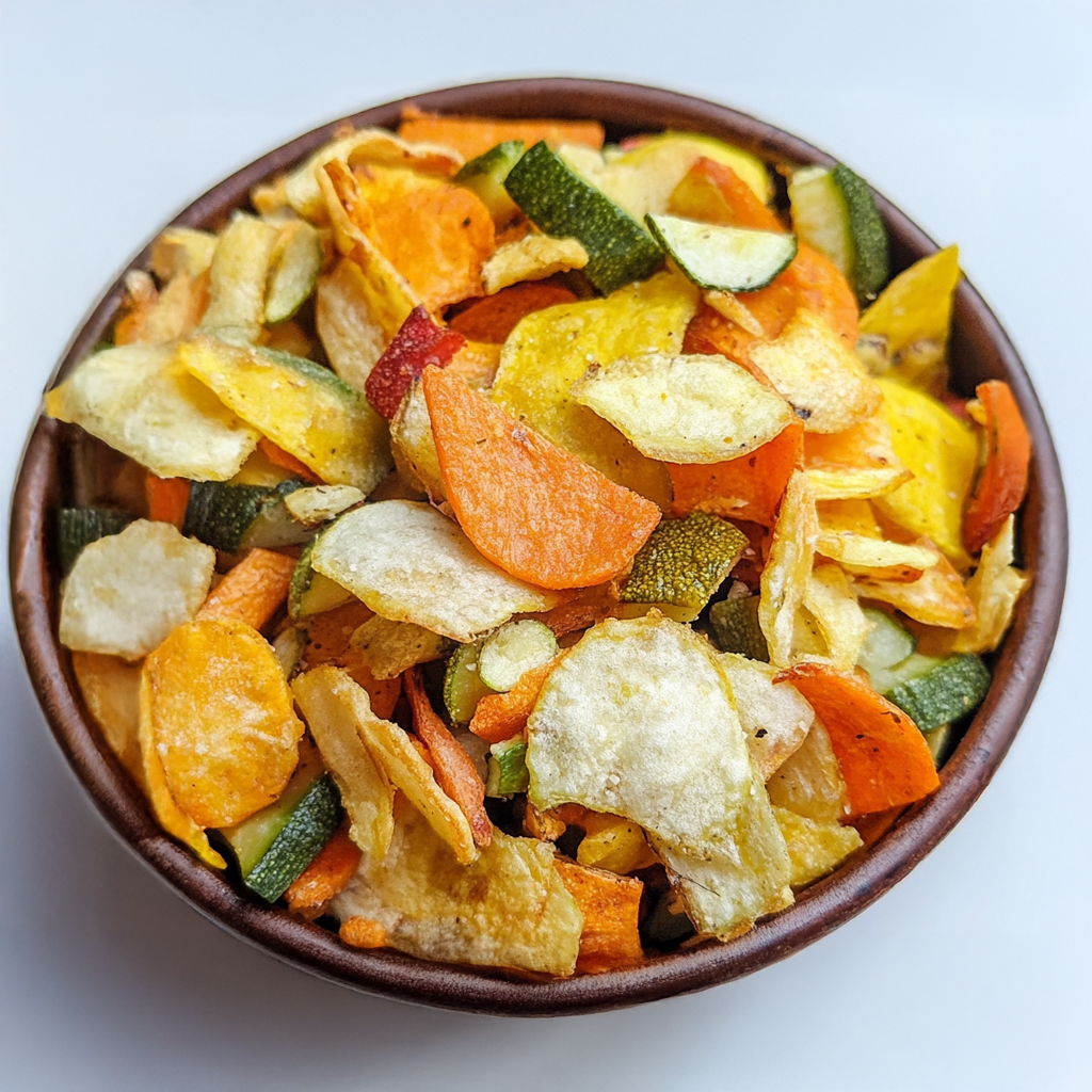 חטיף צ'יפס ירקות מטוגן הוא חטיף קראנצ'י המורכב מירקות טבעיים שעברו טיגון עמוק, מה שמעניק להם מרקם פריך, טעם עשיר וצבעים טבעיים ומגוונים. החטיף עשוי מירקות כמו בטטה, סלק, קייל, גזר, זוקיני, פרוסות תפוחי אדמה ועוד, והוא מהווה אלטרנטיבה צבעונית וצמחית לחטיפים מעובדים.