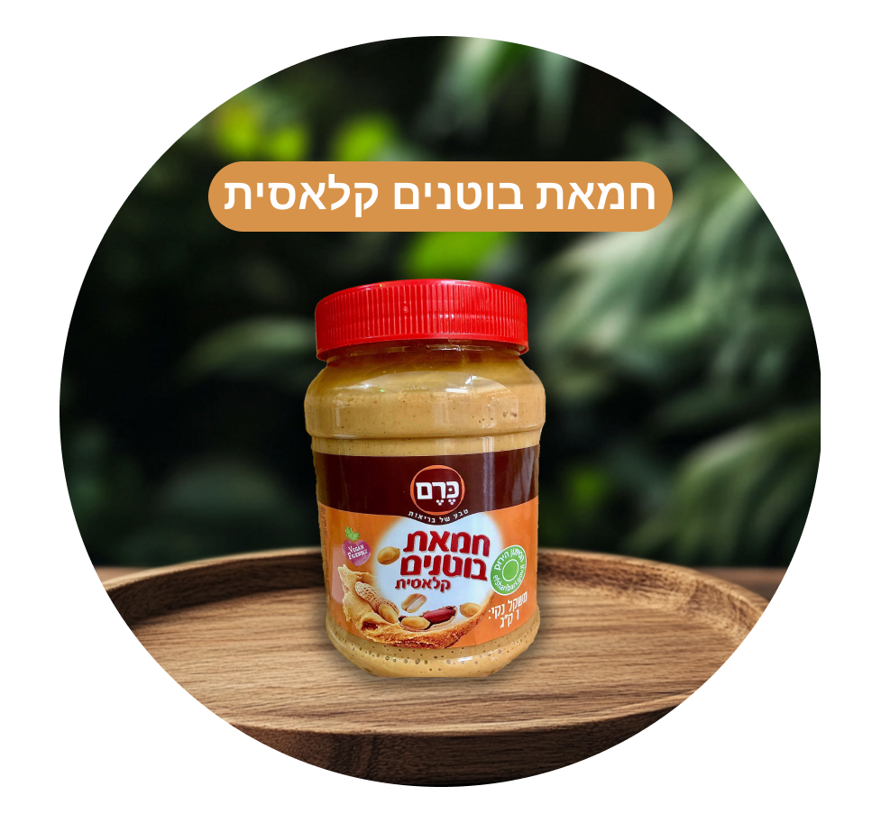 ממרח בוטנים טבעית קלאסית של כרם בעלת טעם ייחודי, במשקל של 1 ק"ג, איכותי ובמחיר מיוחד ומשתלם, עשוי מבוטנים טבעיים, ללא תוספת סוכר, ללא צבעי מאכל, ללא חומרים משמרים.