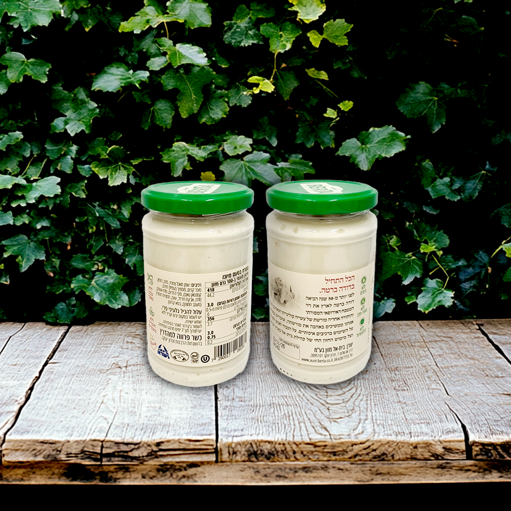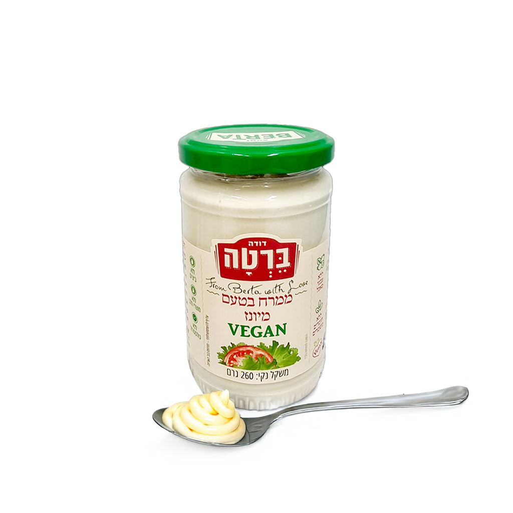 ממרח מהסדרה של מעדני דודה ברטה – ממרח אורגני טבעוני בטעם מיונז.