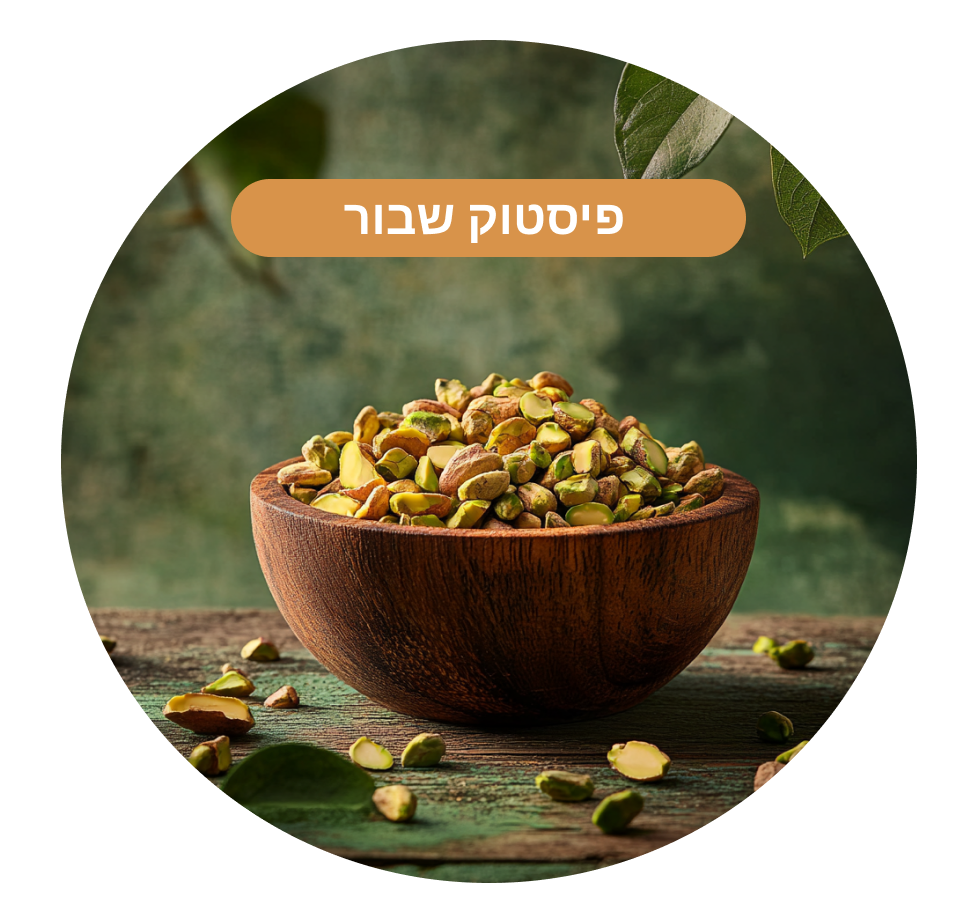 פיסטוק שבור הוא פיסטוק טבעי, קלוי ומקולף, אשר נשבר בתהליך העיבוד או הקלייה. השבירה אינה פוגעת באיכות או בטעם, והיא אף הופכת את הפיסטוק לנוח וזמין יותר לשימוש במגוון מתכונים – החל מקינוחים ועוגות, דרך גלידות ומאפים, ועד לסלטים ותבשילים.