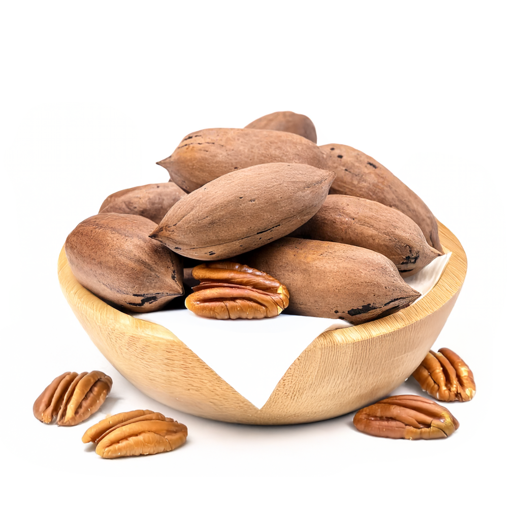 פקאן בקליפה הוא אגוז עשיר בטעם מתוק באופן טבעי, המוגן בתוך קליפתו הקשה, השומרת על טריותו לאורך זמן. הפקאן נחשב למקור מצוין לשומנים בריאים, ויטמינים ונוגדי חמצון, והוא מתאים לנשנוש טבעי, לאפייה, לבישול ולשימושים קולינריים מגוונים.