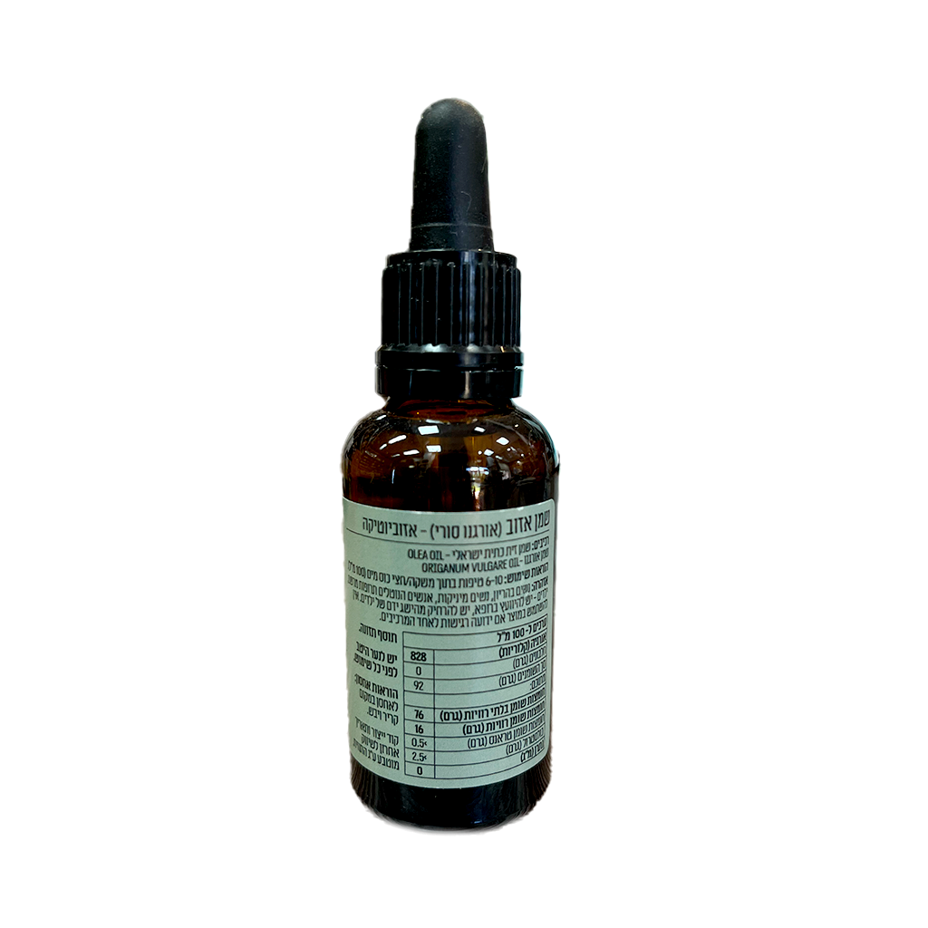 שמן אזוב טבעי 100%, מבוסס תמצית אזוב סורי אורגני בכבישה קרה, מהול בשמן זית כתית מעולה, לשימוש פנימי וחיצוני.