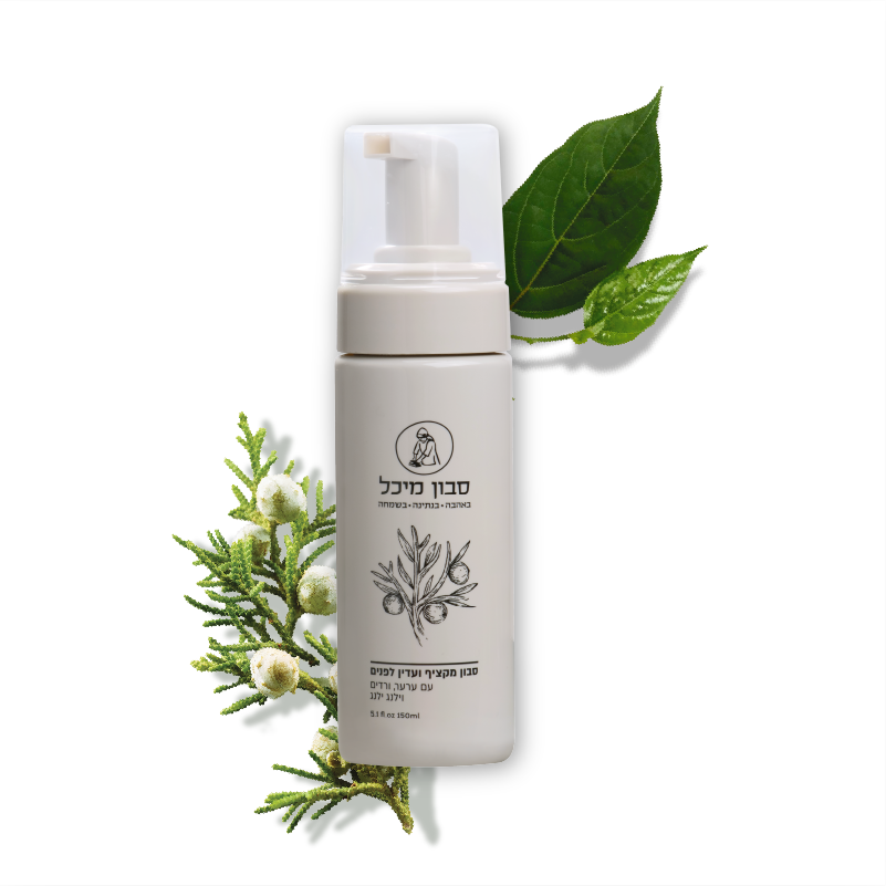 סבון מקציף ועדין לפנים עם ערער, ורדים וילנג ילנג.