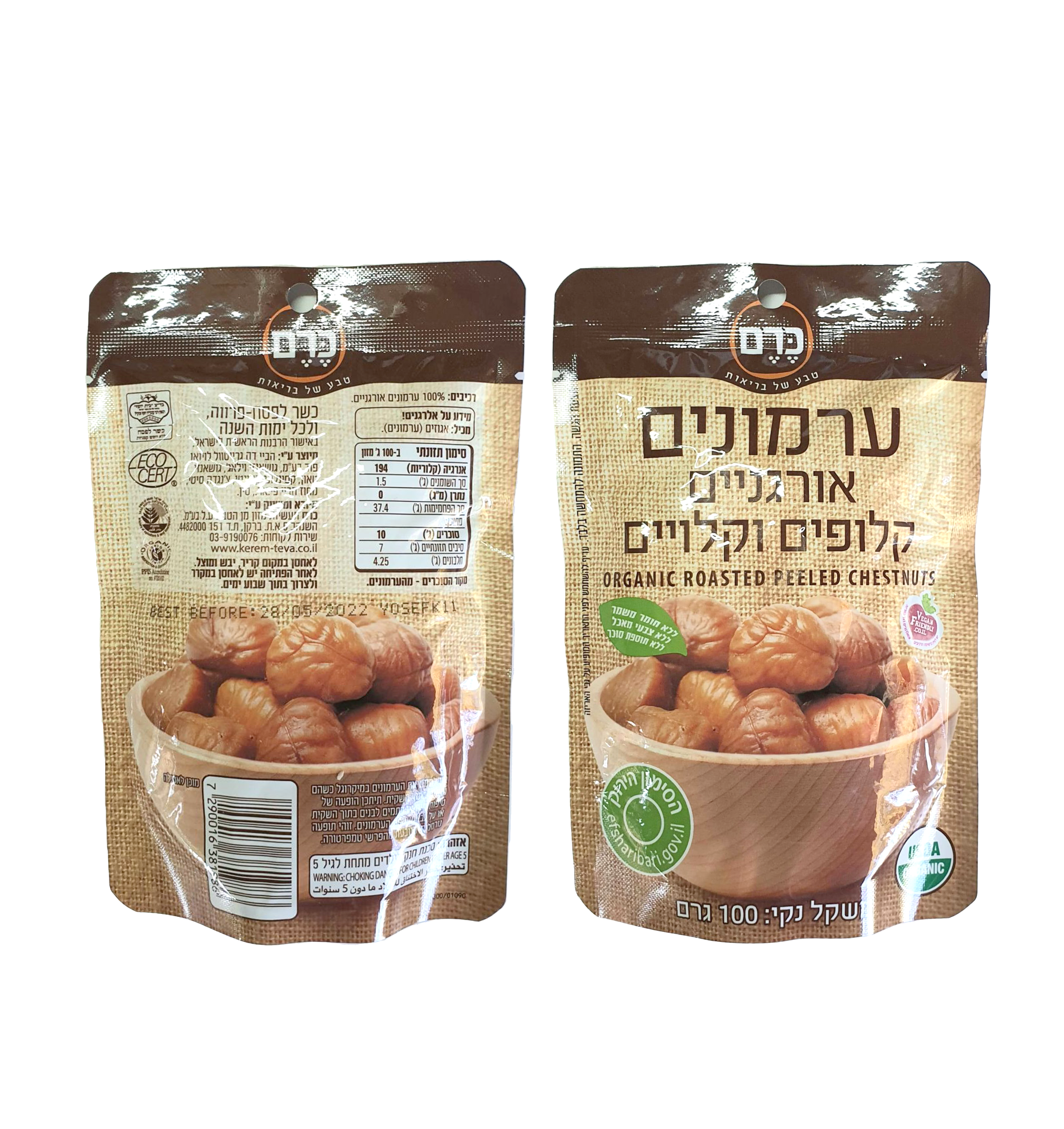 ערמונים אורגניים קלופים וקלויים בוואקום כרם 100 גר'