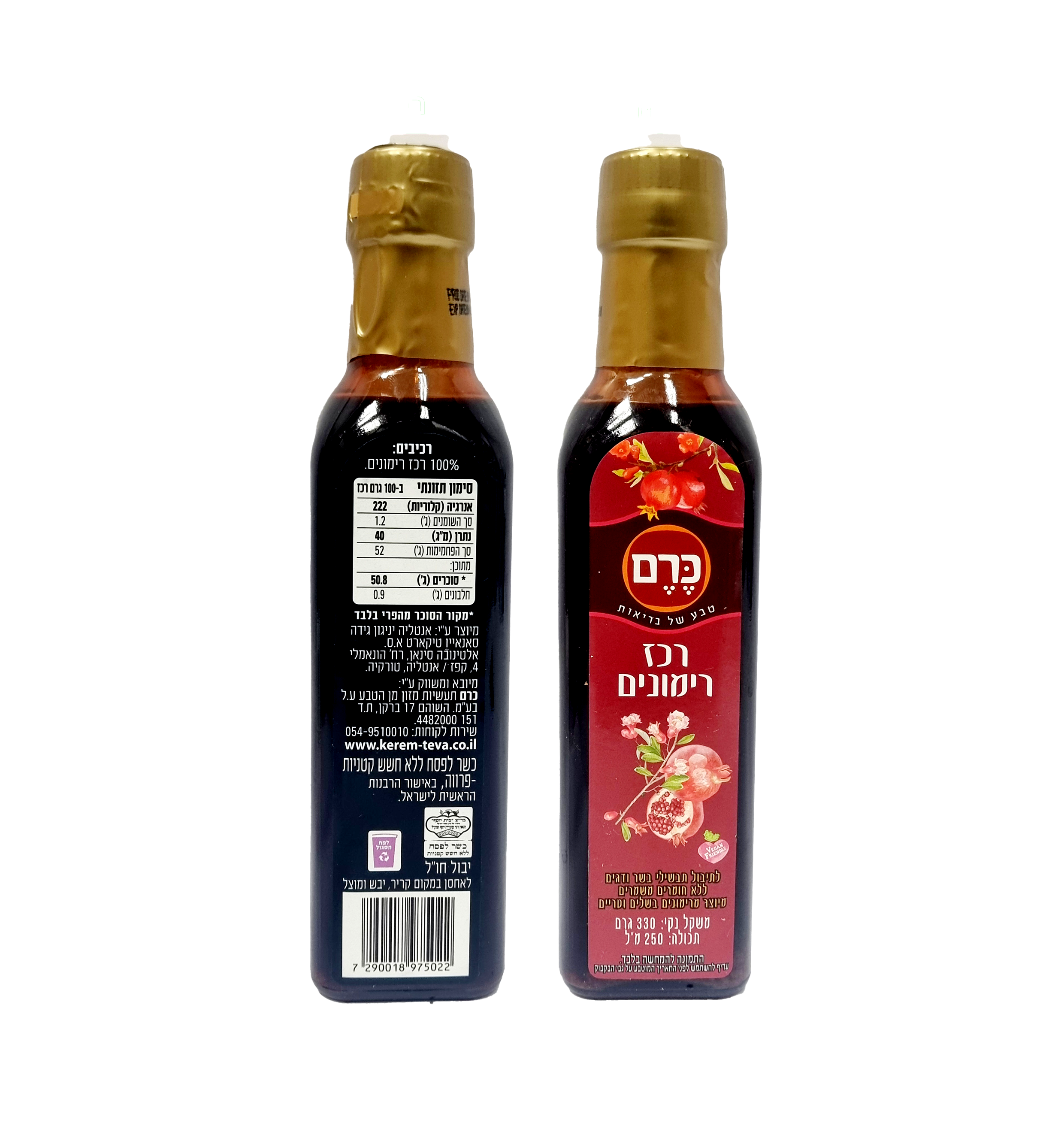 רכז רימונים 100% , 330 גרם, 250 מ"ל – כרם