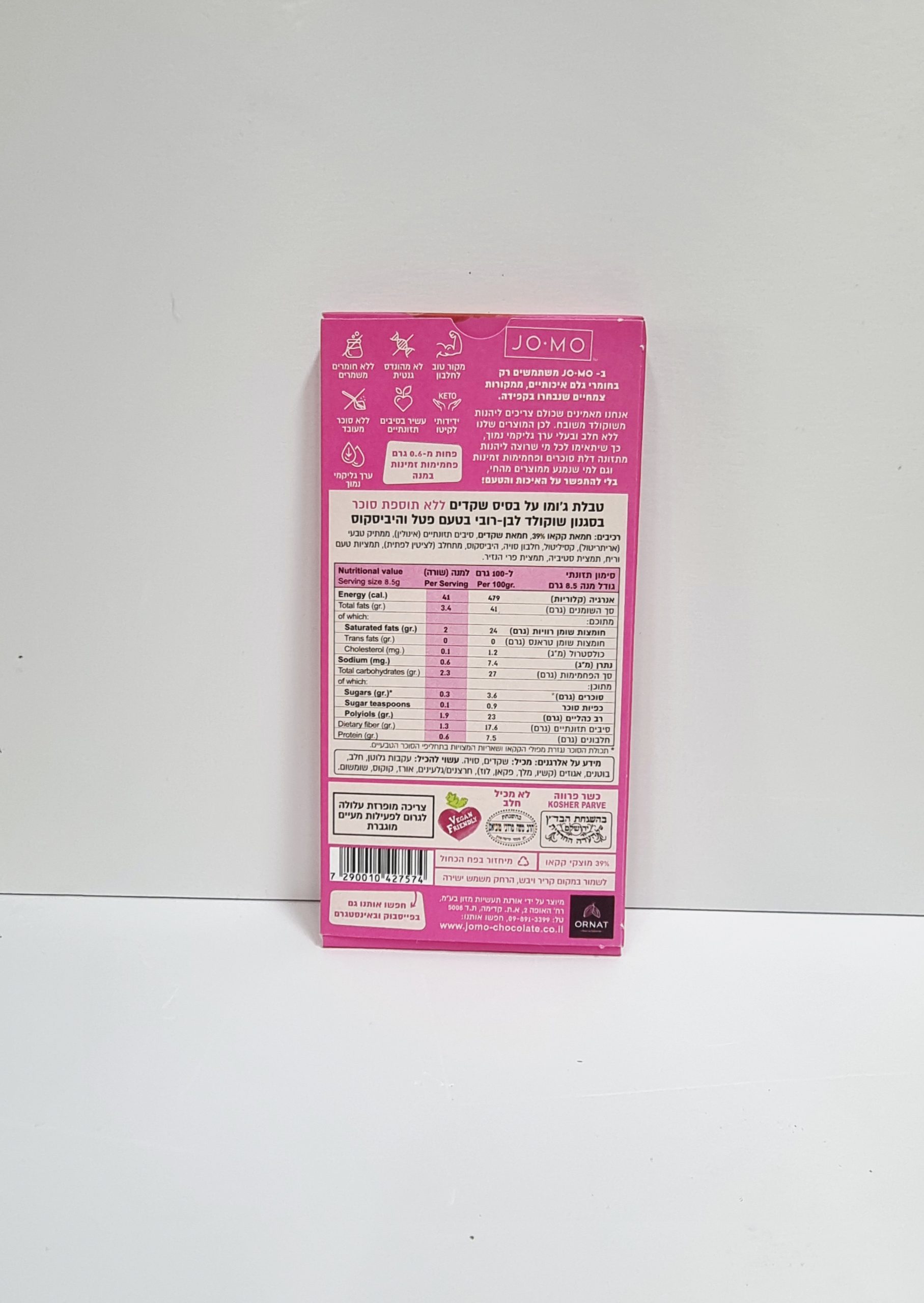 טבלת שוקולד ללא חלב ללא תוספת סוכר – JO M0 , בסגנון שוקולד לבן – רובי בטעם פטל והיביסקוס