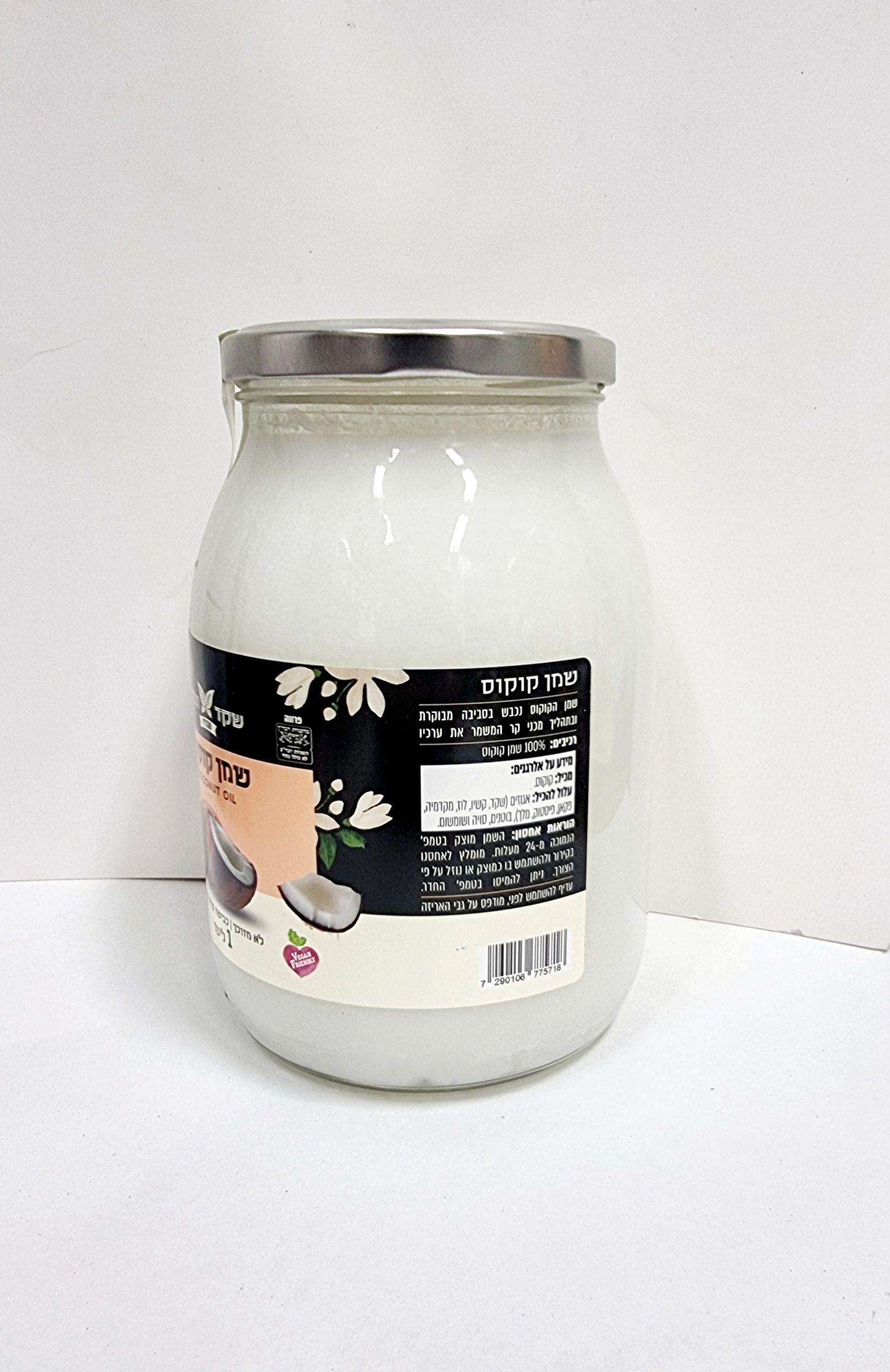שמן קוקוס לא מזוכך, בכבישה קרה, טבעי, כשר פרווה, כשרות מהודרת ברשות אליהו אילוז .שמן הקוקוס נכבש בסביבה מבוקרת ובתהליך מכני קר המשמר את ערכיו , רכיבים: 100% שמן קוקוס